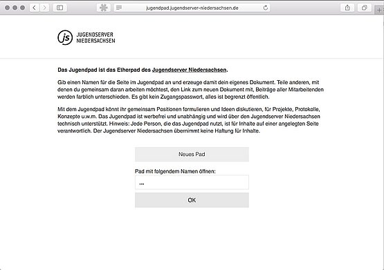 Das Jugendpad ist das Etherpad des Jugendserver Niedersachsen.
