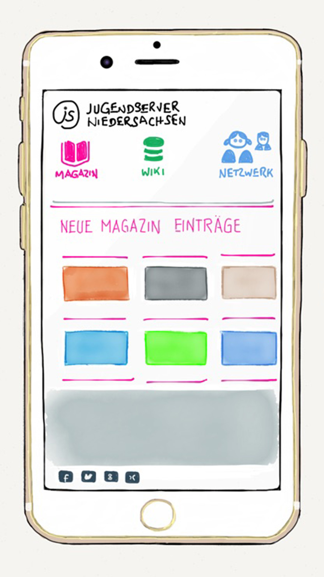»Schreibrecht für alle!« Auf dem Jugendserver Niedersachsen können neueste Meldungen aus dem gesamten Themenfeld Jugendarbeit veröffentlicht werden. Eine Tag-Cloud bietet einen alternativen Navigationseinstieg. Mit Kommentaren und Beitrag-Melden-Funktion bestimmen die Leser*innen selbst die Qualität der Beiträge. Aktuelle Veranstaltungen und Abstimmungen ergänzen das Angebot auf der Magazin-Ebene. Die Farbe ist pink, das Motto heißt »Mitschreiben«